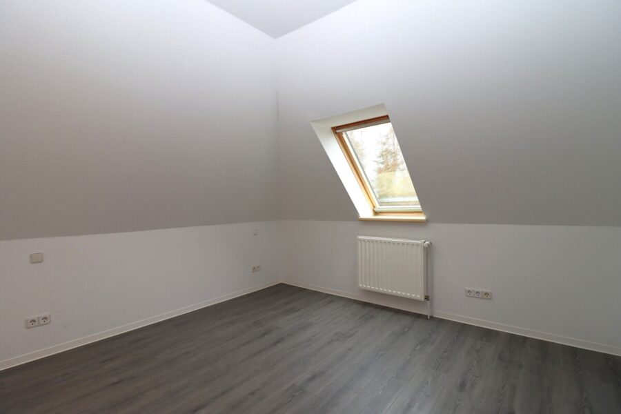 Die Einliegerwohnung im Obergeschoss verfügt über drei Zimmer, eine große Küche, ein Bad mit Badewanne sowie einen Kaminofen. Sie ist über ein separates Treppenhaus zugänglich und eignet sich daher ideal als eigenständige Einheit – zum Beispiel als Büro oder für ein älteres Kind.