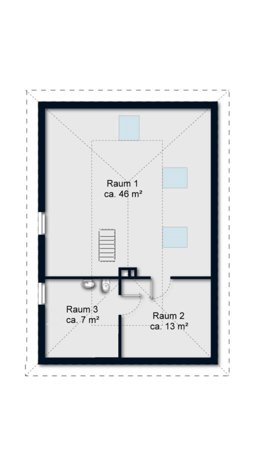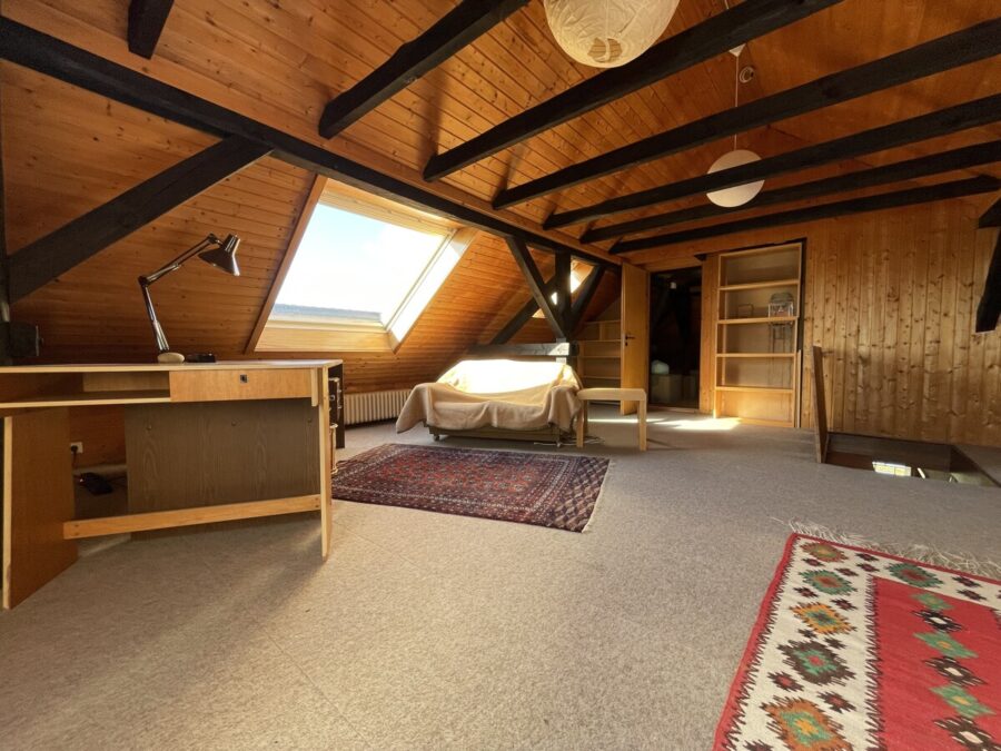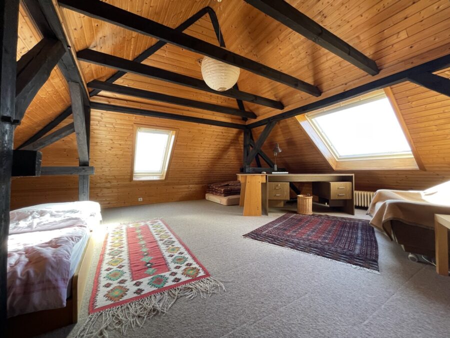Über eine kleine Treppe erreichen Sie das ausgebaute Dachgeschoss, das sich ideal als zusätzliches Schlafzimmer, Büro oder kreativer Rückzugsort eignet. Ein Zimmer verfügt hier sogar über Wasseranschlüsse sowie ein WC und ein Handwaschbecken.