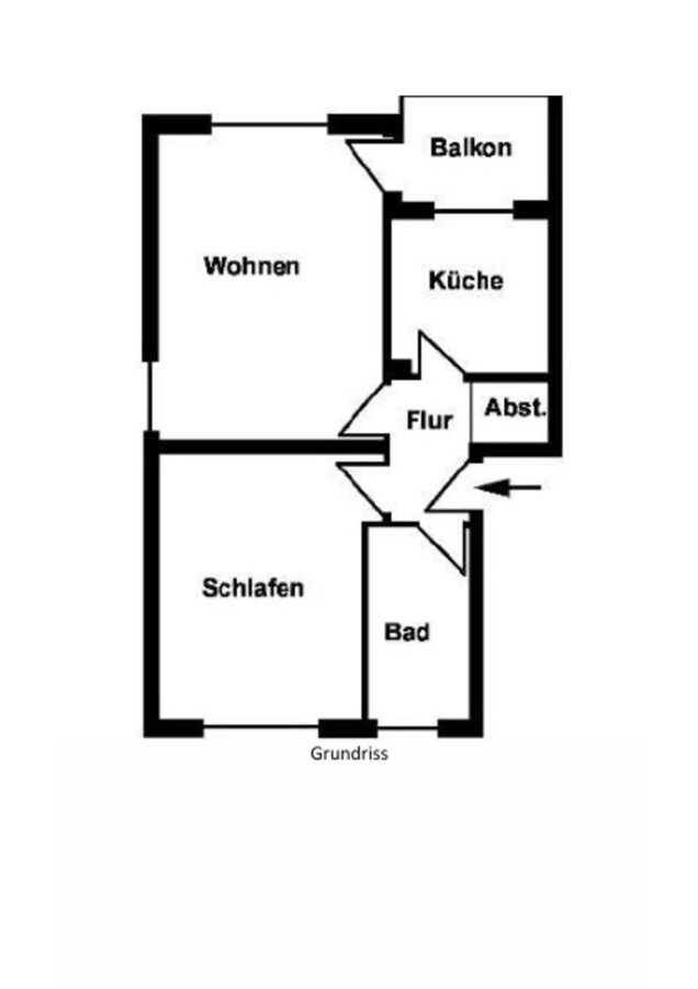 Über den Eingangsbereich gelangt man geradeaus in das gemütliche Wohnzimmer, welches den Zugang auf die nach Westen ausgerichtete Loggia bietet. Diese wirkt durch die großen Fenster hell und freundlich. Links neben dem Wohnzimmer befindet sich das geräumige Schlafzimmer. Rechts vom Flur gelangt man in die Küche, welche mit weißen Schranken ausgestattet ist. Hier hat man einen schönen Ausblick auf die Nachbarschaft von der danebenliegenden Loggia. Links vom Flur gelangt man in das Vollbad. Dieses ist hell gefliest und verfügt über einen Waschmaschinenanschluss. Direkt neben dem Eingang der Wohnung befindet sich ein Abstellraum.
