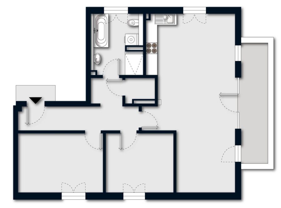 Beim Betreten der Wohnung gelangen Sie durch den Flur geradeaus in den großzügigen Wohn- und Essbereich. Das Highlight dieser Wohnung ist der Balkon mit Ost-Ausrichtung, der Ihnen morgens die Sonne ins Wohnzimmer holt. Genießen Sie hier entspannte Stunden mit einem Kaffee oder einem guten Buch. Der Balkon bietet zudem einen schönen Blick auf die Umgebung.